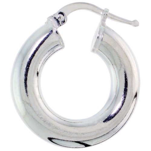 Buy Now! 3/4" ( 20 mm ) Sterling Silver 5mm Tube Snap-Down-Post Hoop Earrings