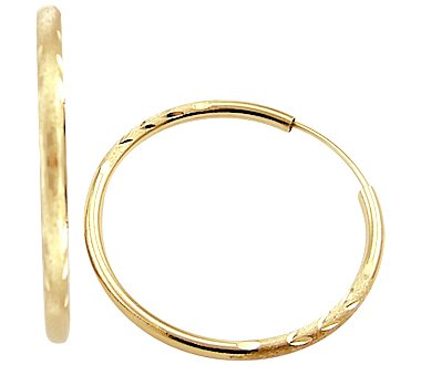 Buy Now! 14k Yellow Gold Diamond Cut Hoop Huggie Earrings .75"